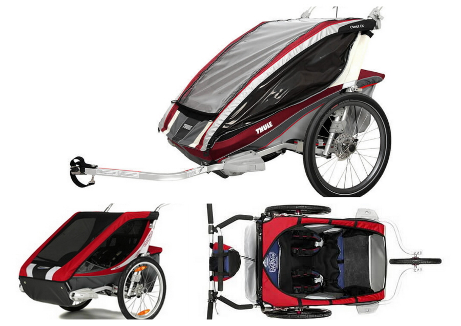 Thule Chariot CX1 a CX2 je dvoumístný dětský vozík za kolo, kompletně vybavený tažnou tyčí, joggingovým setem a kočárkovým setem. O bezpečnost se starají instalované odrazky a bezpečnostní praporek. K vozíku lze zapůjčit i obal.