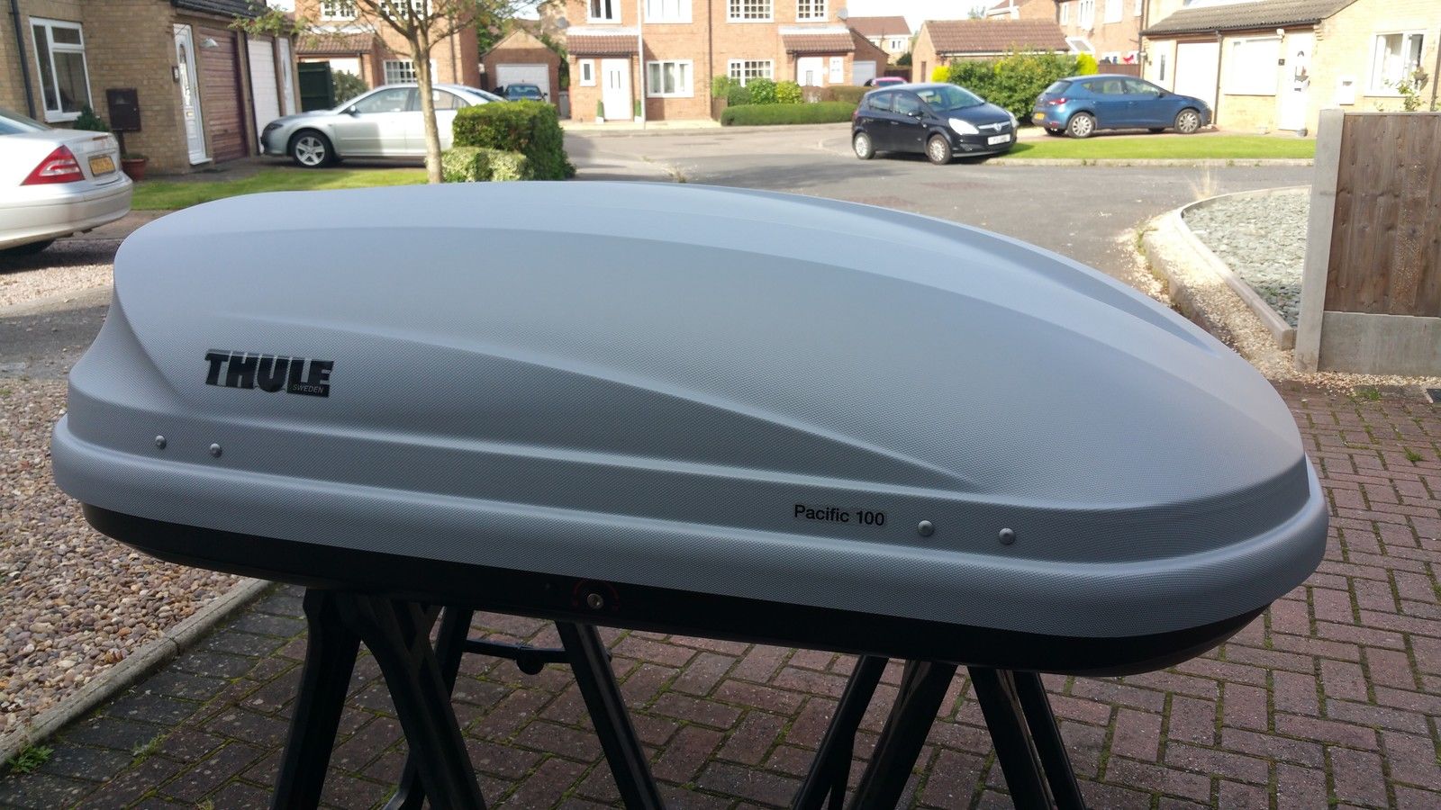Thule Pacific 100 je střešní box s rychloupínacím systémem Fast-Grip, oboustranným otevíráním a novým povrchem aeroskin. Rychloupínací systém Fast Grip uchycení boxu nesmírně usnadňuje, snížené dno pro menší odpor vzduchu a speciální patentovaná vzpěra Dual Force ulehčuje otevírání a zavírání boxu, pružina víka působí při otevírání boxu směrem nahoru a při zavírání směrem dolů. Autobox je svým tvarem a délkou vhodný zejména pro přepravu dětského kočárku či batožiny.